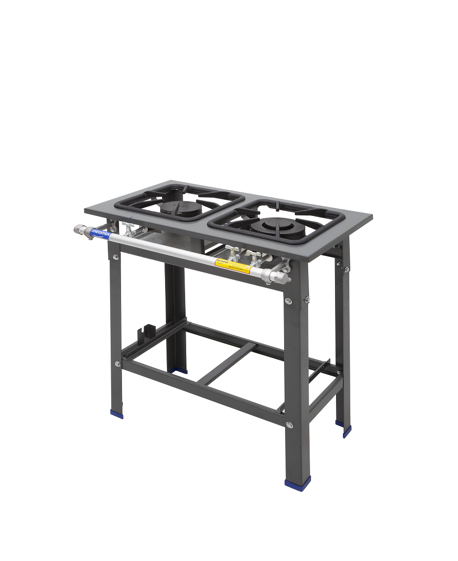 ● Queimador simples frontal com vazão de 300g/h e acionamento único do espalhador;