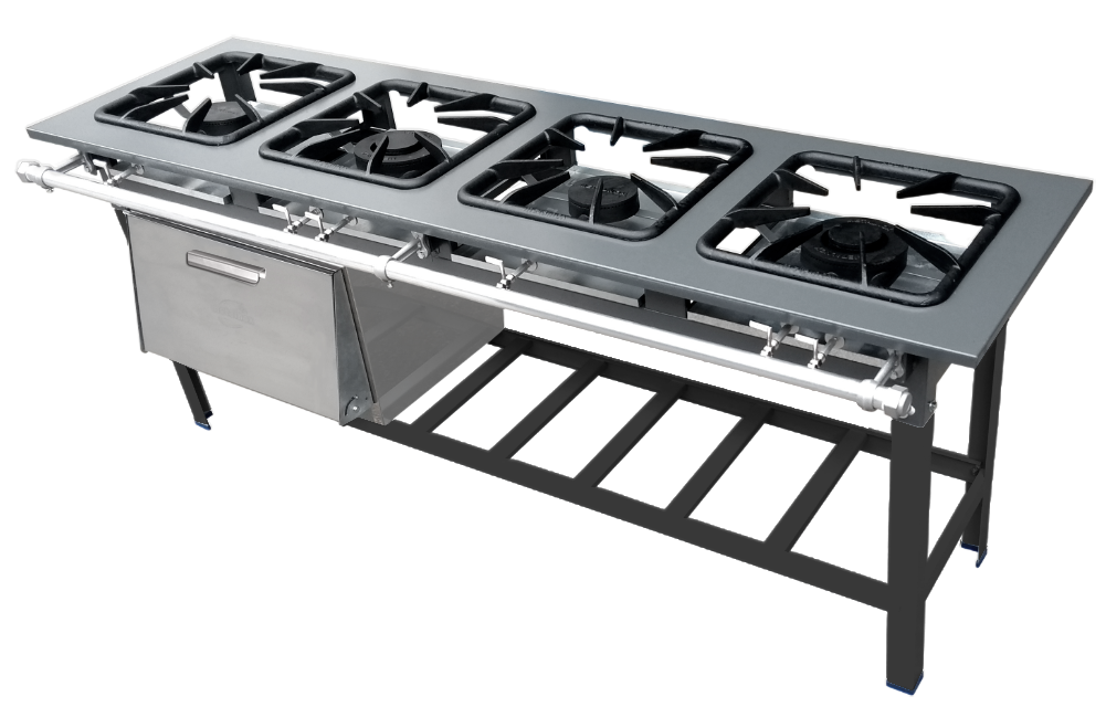 FOGÃO EM LINHA COM 4 BOCAS E FORNO