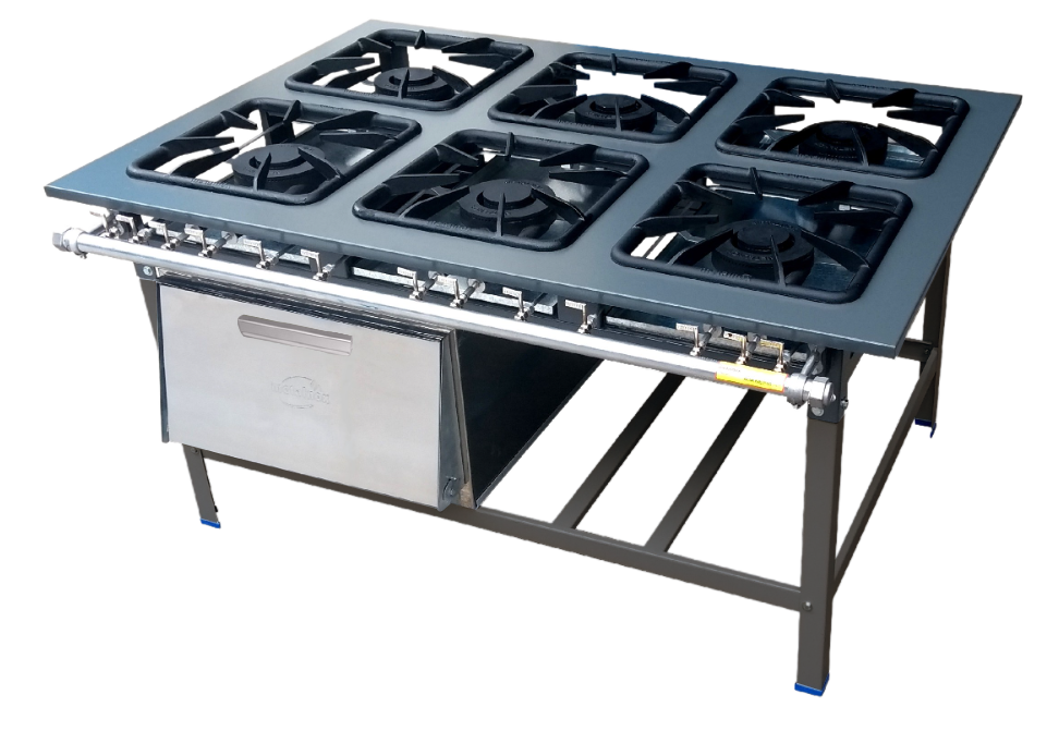 FOGÃO EM PARALELO COM 6 BOCAS E FORNO