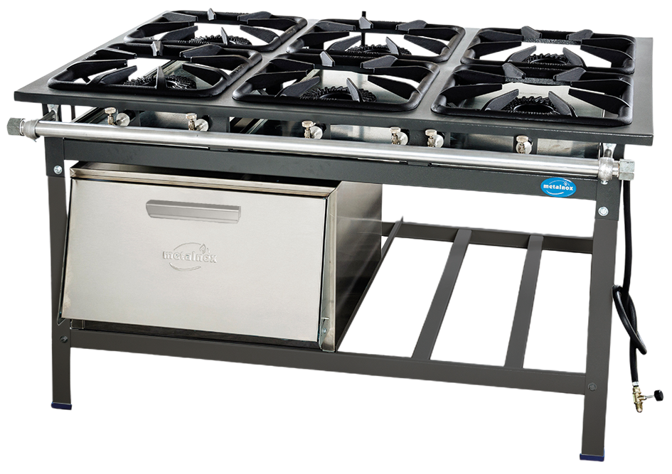 FOGÃO EM PARALELO COM 6 BOCAS E FORNO