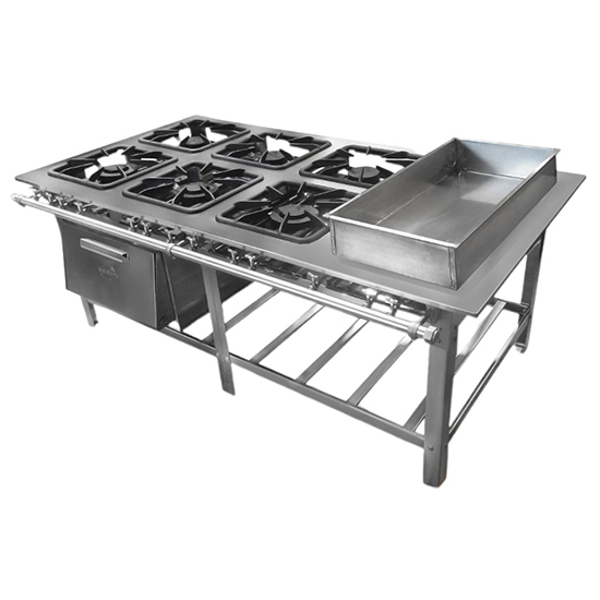 FOGÃO EM PARALELO COM 6 BOCAS, BANHO MARIA E FORNO
