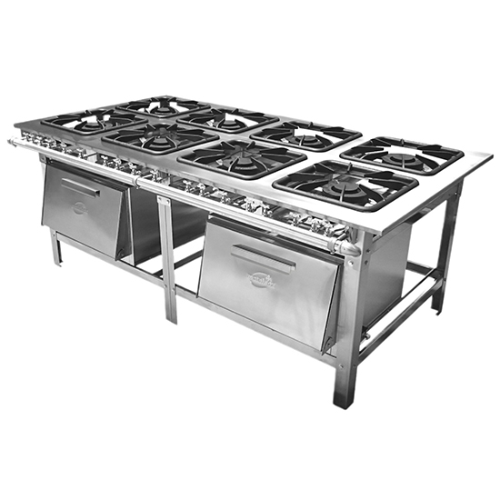 FOGÃO EM PARALELO COM 8 BOCAS E 2 (DOIS) FORNOS