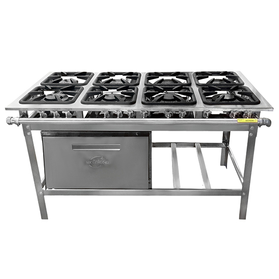 FOGÃO EM PARALELO COM 8 BOCAS E FORNO