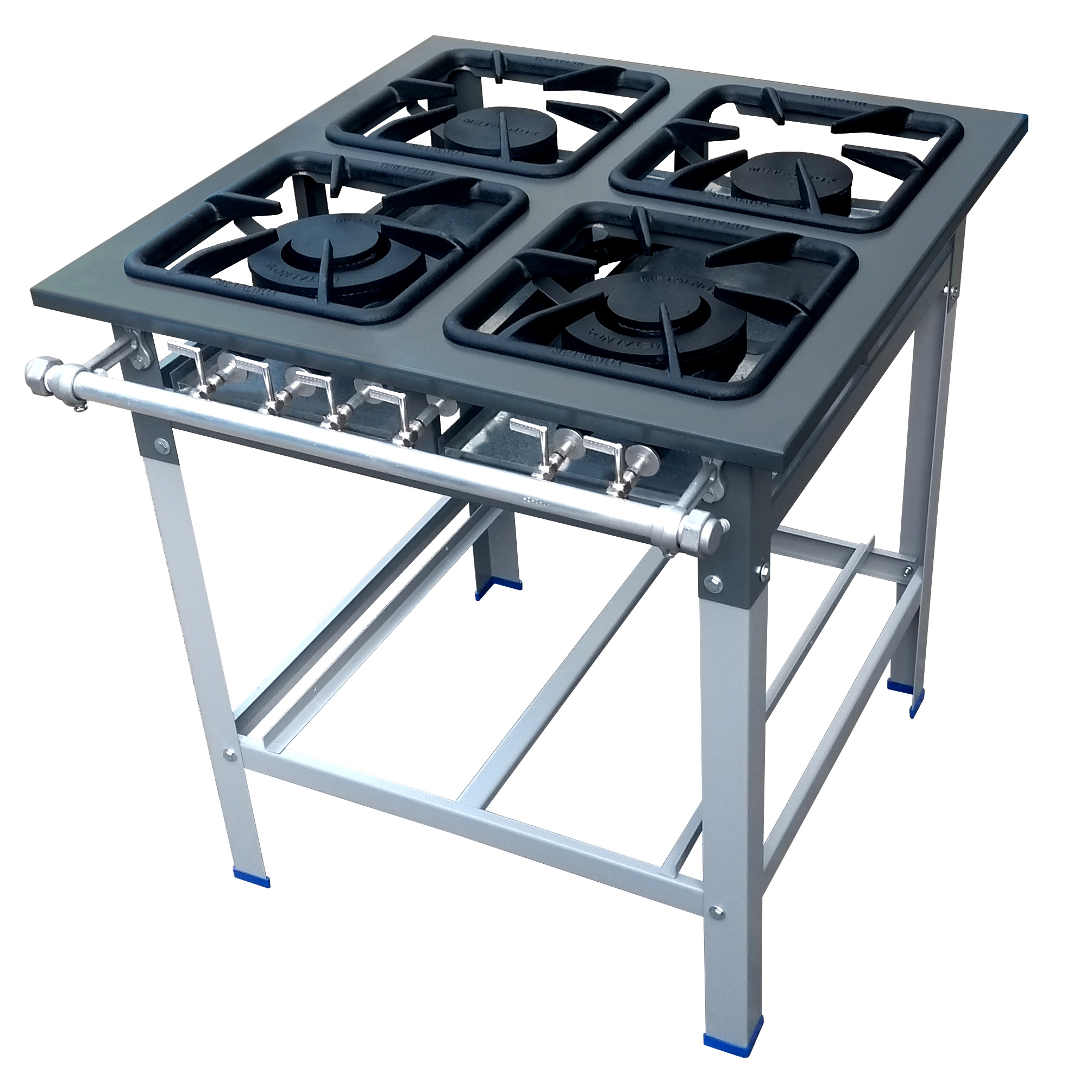 ● Queimadores simples traseiros em ferro fundido com vazão de 300g/h e acionamento único do espalhador;
