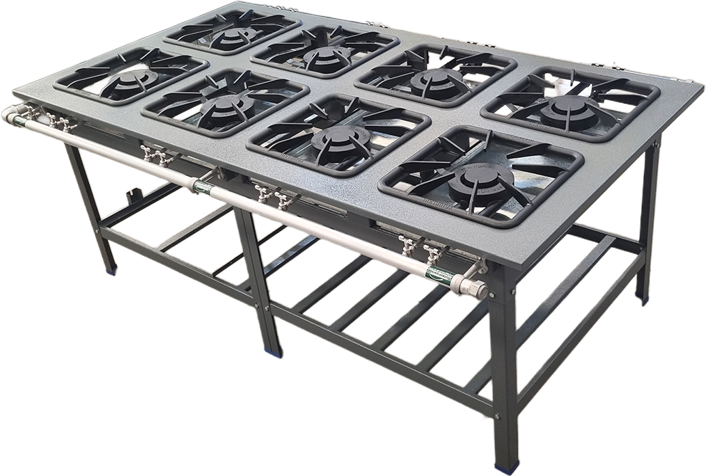 FOGÃO EM PARALELO COM 8 BOCAS - P/ CENTRO DE COZINHA
