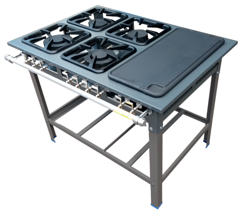 FOGÃO EM PARALELO COM 4 BOCAS E CHAPA BIFETEIRA