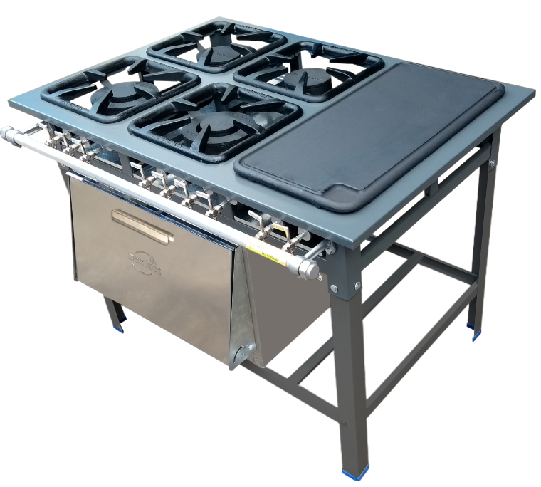 FOGÃO EM PARALELO COM 4 BOCAS, CHAPA BIFETEIRA E FORNO
