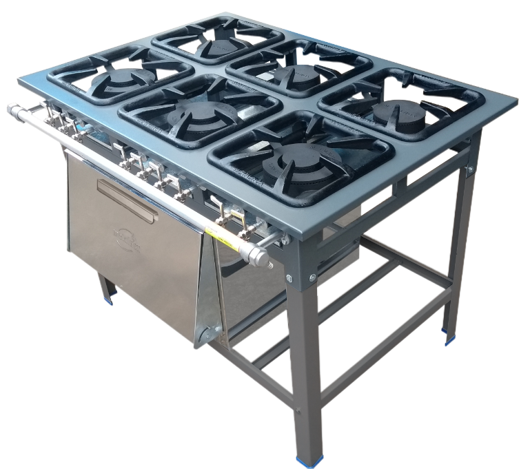 FOGÃO EM PARALELO COM 6 BOCAS E FORNO