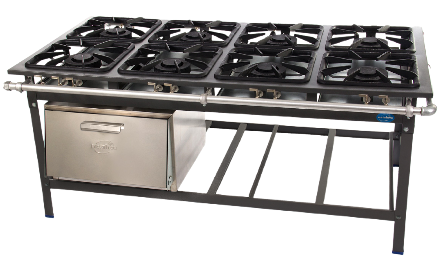 FOGÃO EM PARALELO COM 8 BOCAS E FORNO - P/ CENTRO DE COZINHA