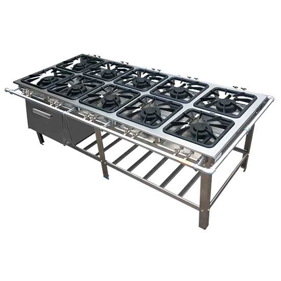 FOGÃO EM PARALELO COM 10 BOCAS E FORNO - P/ CENTRO DE COZINHA