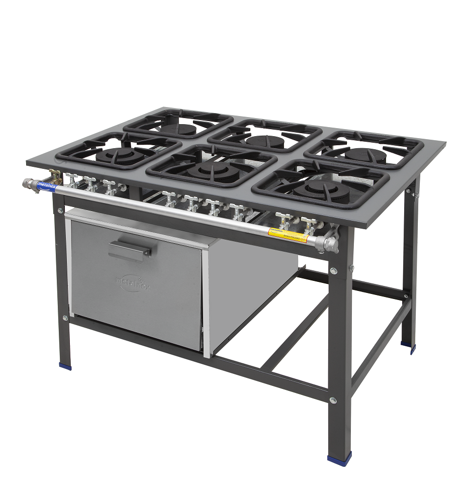 FOGÃO EM PARALELO COM 6 BOCAS E FORNO